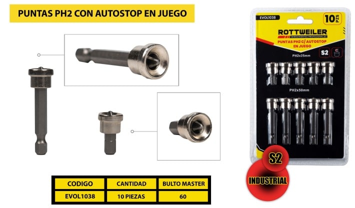 PUNTAS PH2 CON AUTOSTOP EN JUEGO X 10 PIEZAS